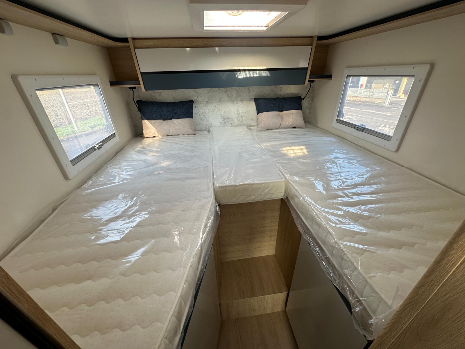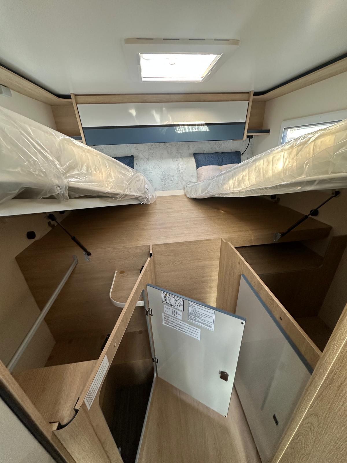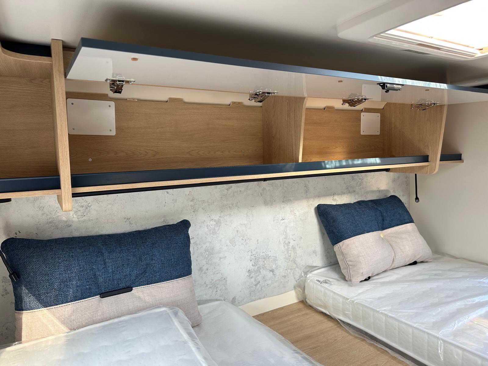 Compatto ma sorprendentemente spazioso, offre un’ottima abitabilità con letti gemelli, letto basculante singolo e design smart. Perfetto per coppie dinamiche.