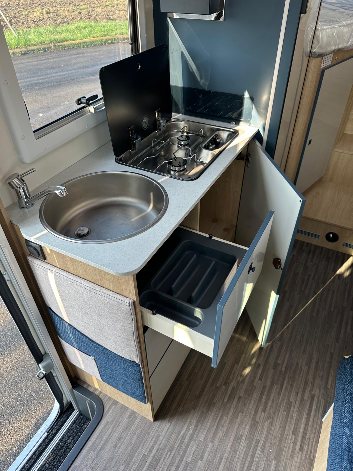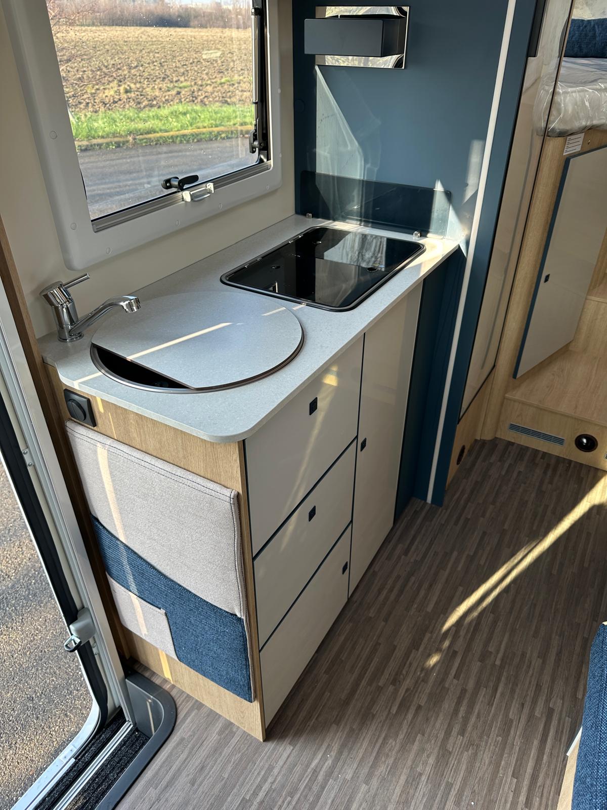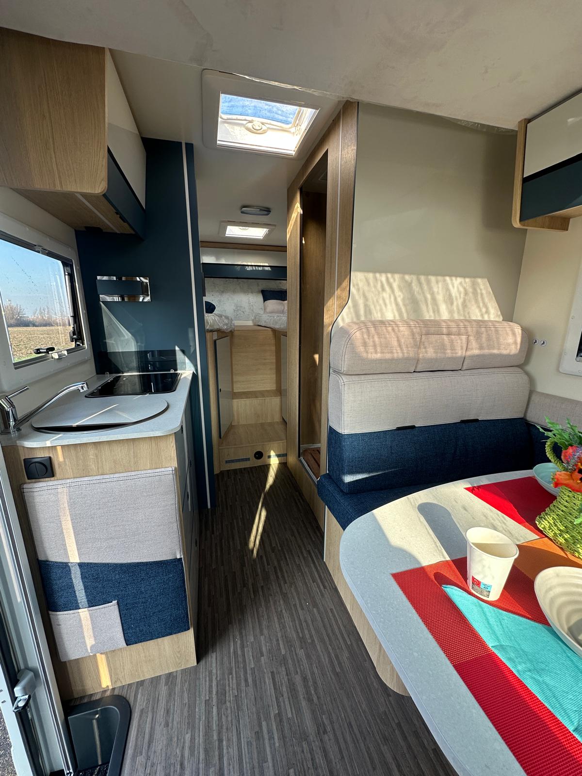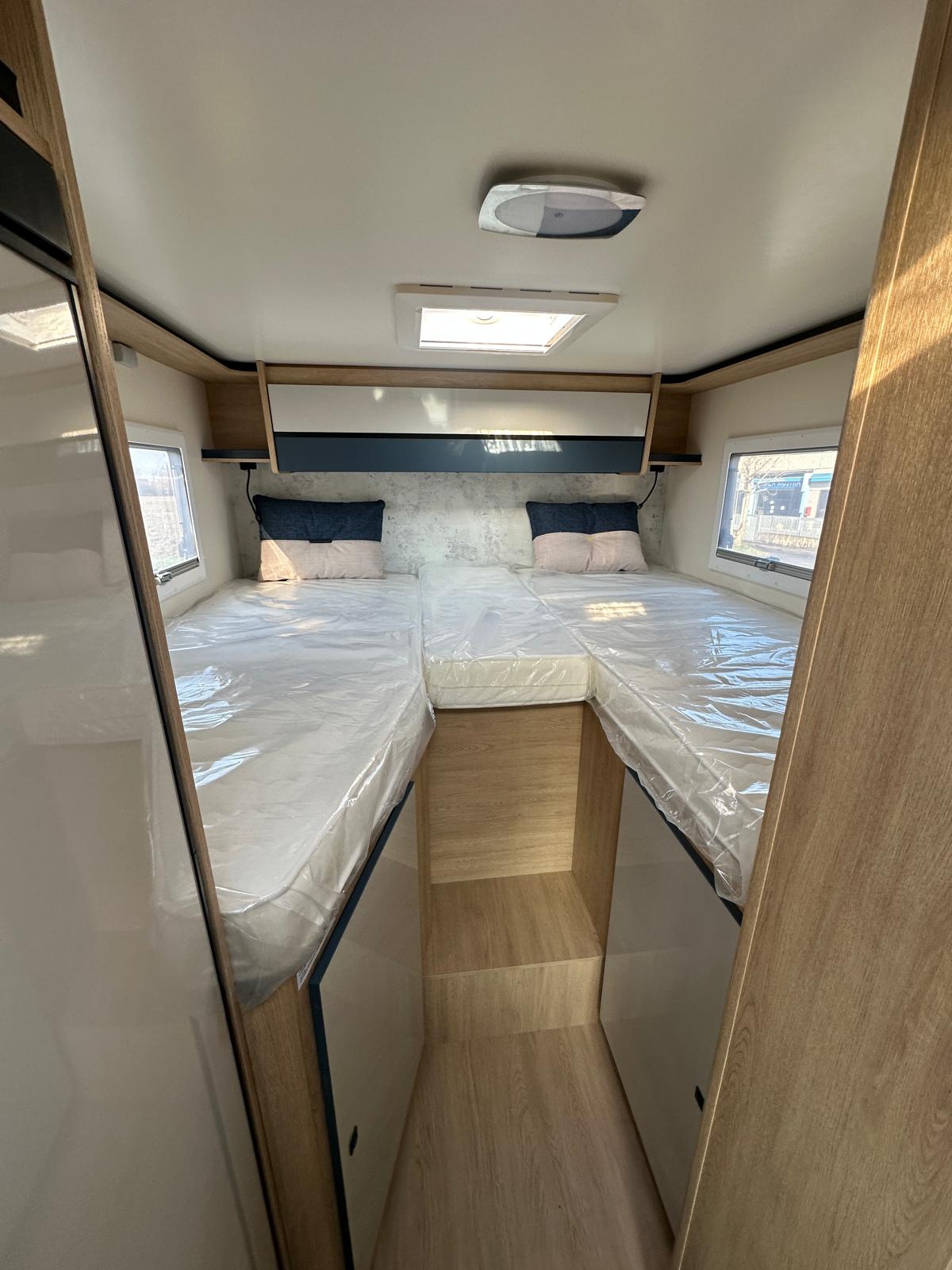 Compatto ma sorprendentemente spazioso, offre un’ottima abitabilità con letti gemelli, letto basculante singolo e design smart. Perfetto per coppie dinamiche.